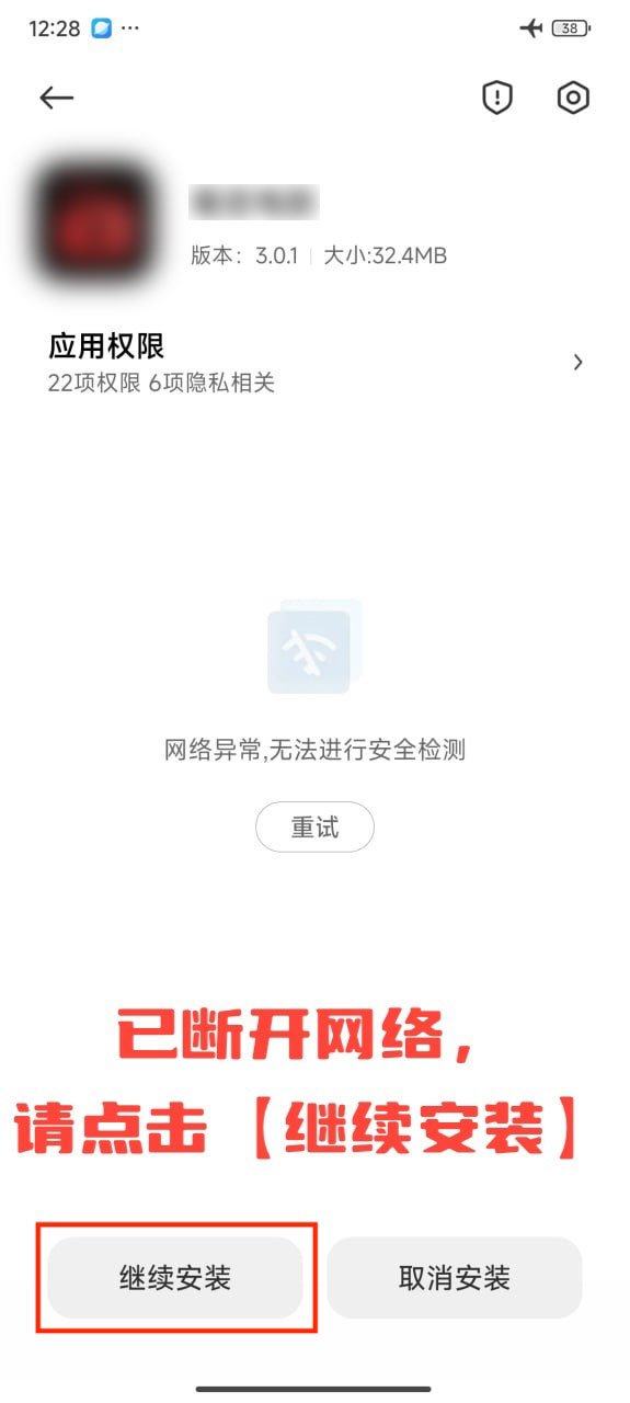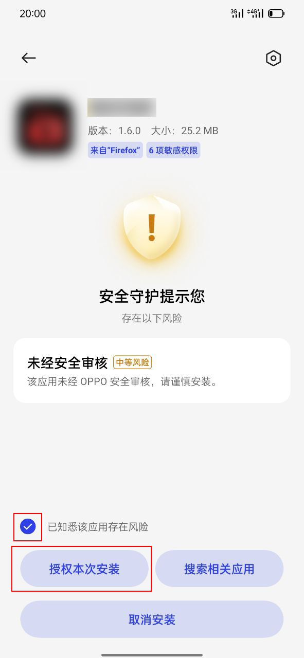 3.取消系统默认风险提示后,再次点击apk安装即可